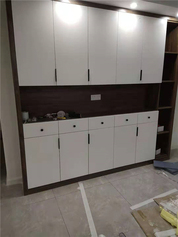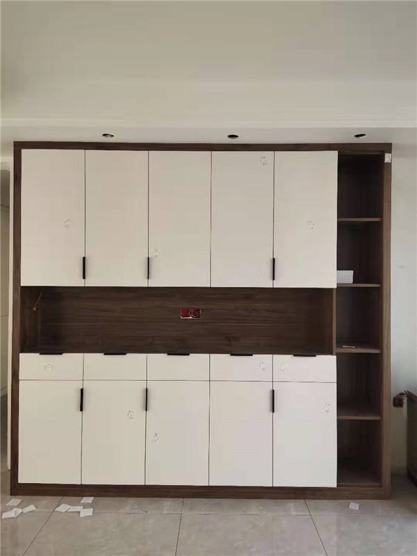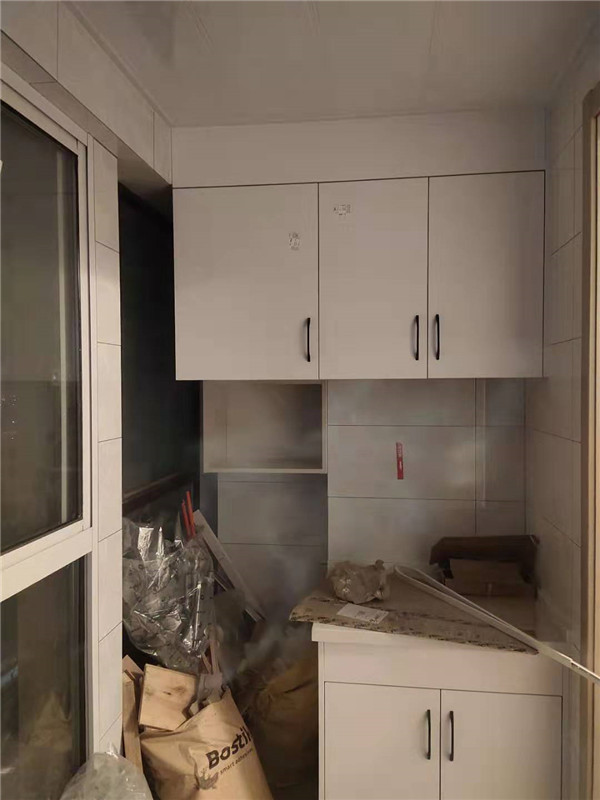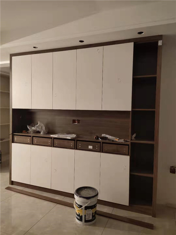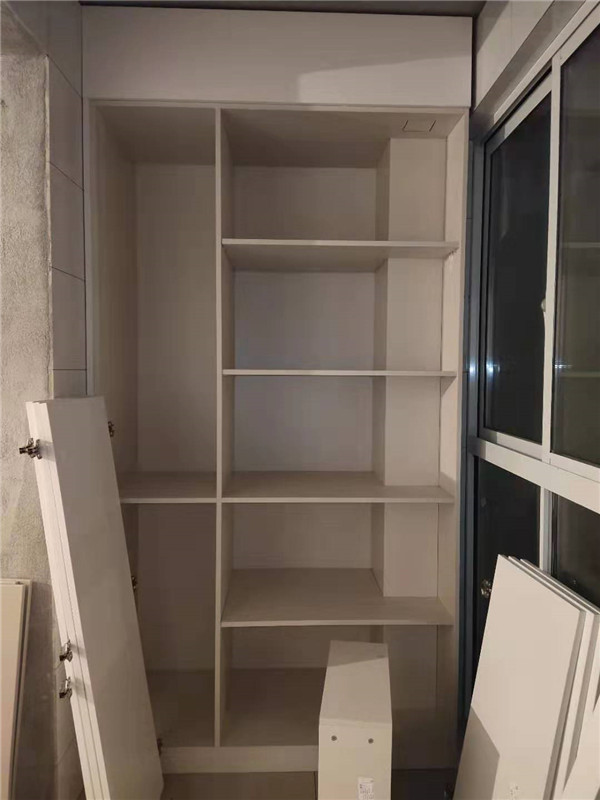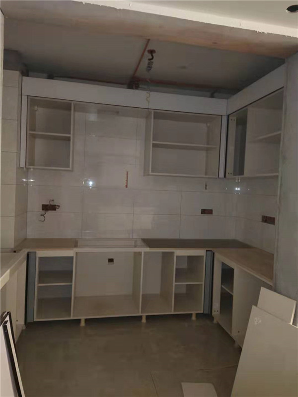 最新戰報,柜體已全部拼裝完畢了,天氣越發的冷了,師傅干活辛苦了