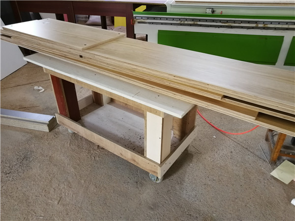 開始制作啦!柜體裁板中,板材使用平安樹實木多層板,清水橡木E0級制作,有高級的藍光防偽標識哦
