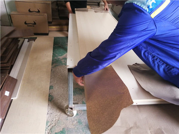 裁板封邊同時進行,封邊采用法國波士熱熔顆粒膠,設備溫度達到200°C封出來的邊牢固,沒有爆邊,完美無瑕。每塊板上都貼有小標簽,方便后期安裝師傅安裝,封邊條上都帶有小二家居logo的哦!方便后期售后。