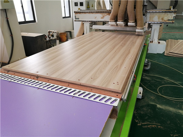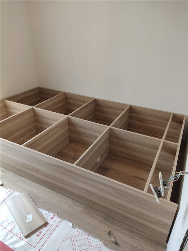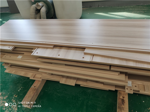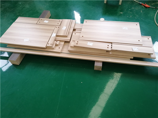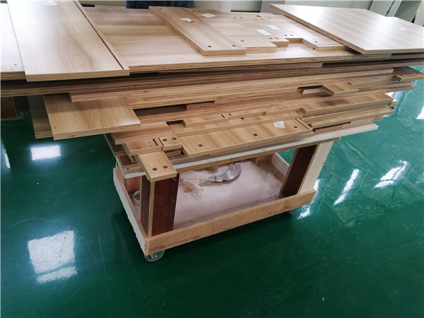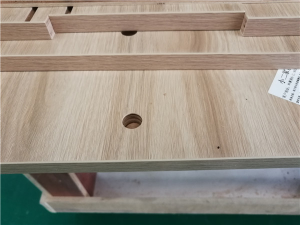 開始制作啦!專業(yè)設備裁板,沒有爆邊。板材使用平安樹實木多層板E0級制作,有高級的藍光防偽標識哦