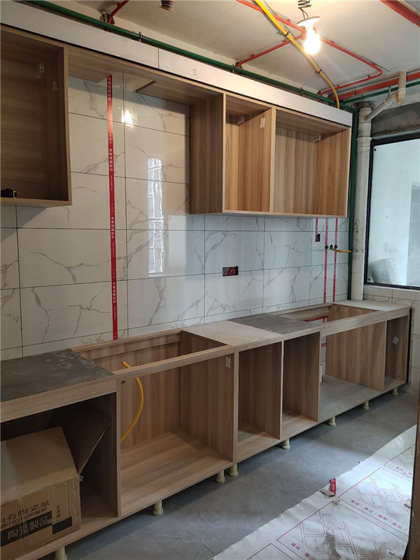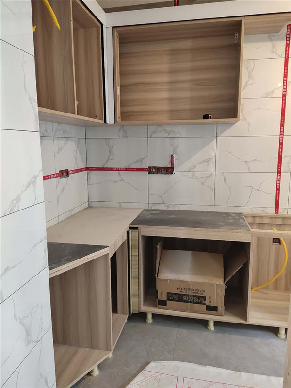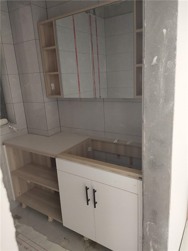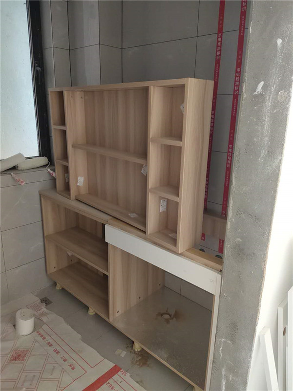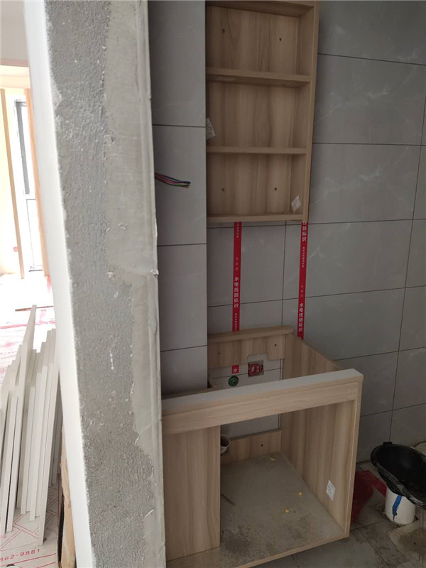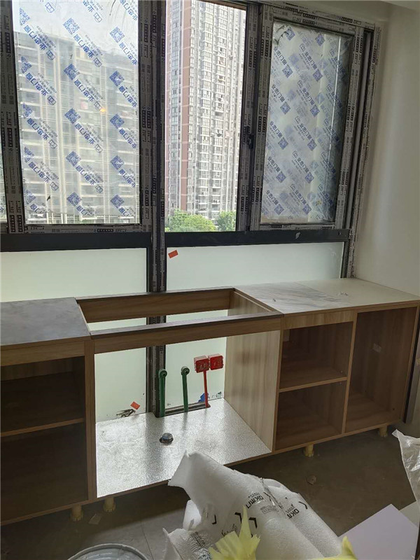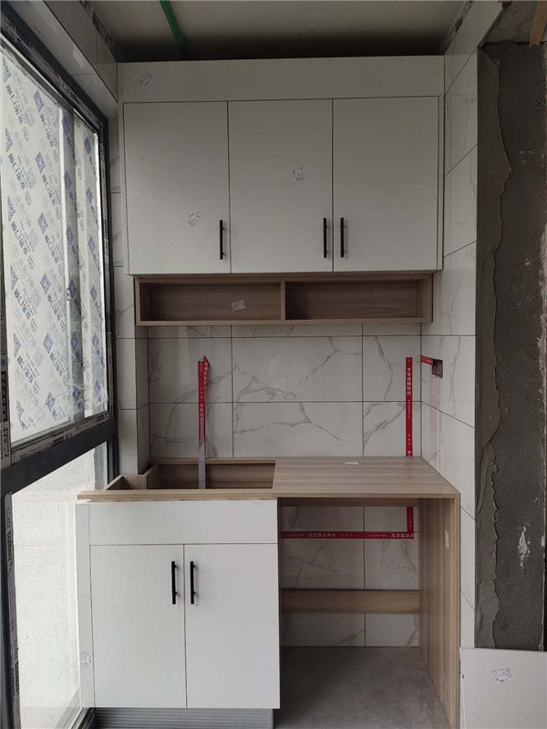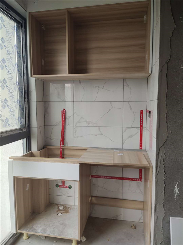 再來一波廚衛(wèi)和陽臺柜。廚房水槽下還有錫紙防水。
