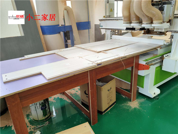 部分封邊完畢,進入打包環節,我家柜子板材都是整個包起來的,以防運輸過程中劃傷或者磕碰到,