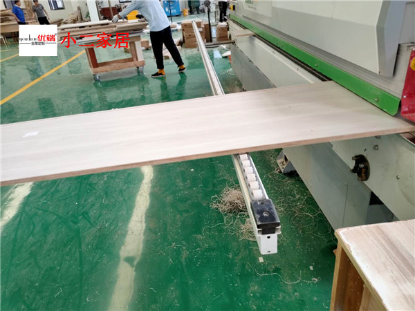 開始制作啦!專業設備裁板,邊口都是直的,沒有爆邊的情況,這樣后面封邊更圓滑,面孔