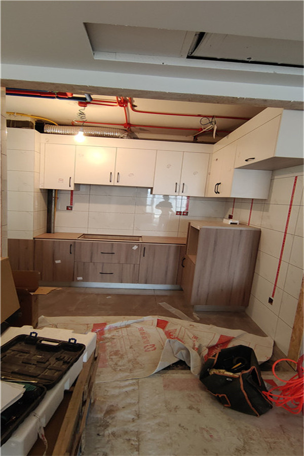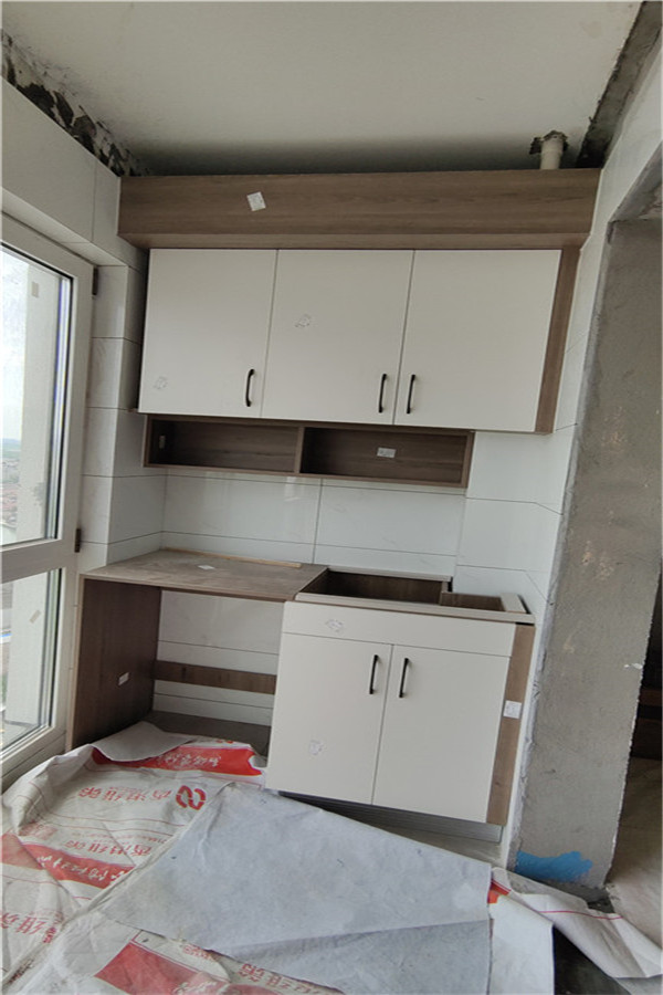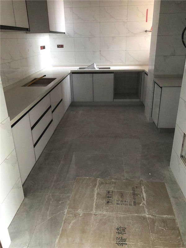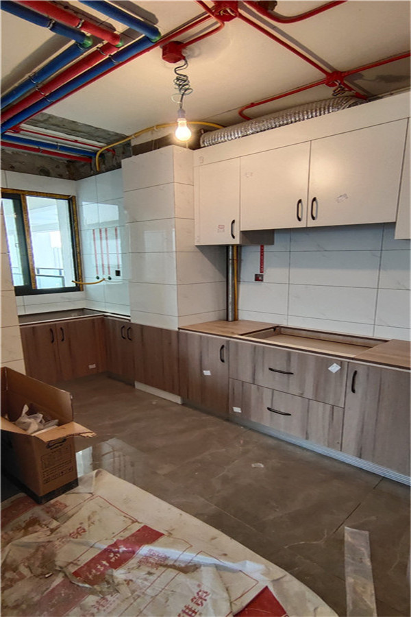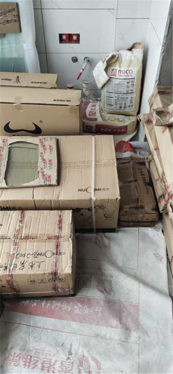 要用到的廚房水槽、灶具、浴柜臺盆放置在現場,后期臺面安裝需用到。柜子安