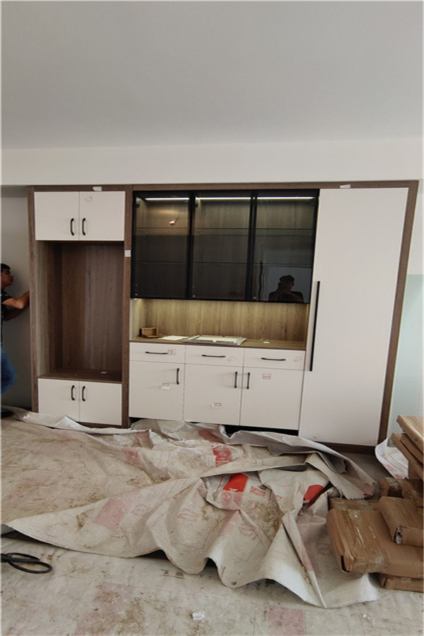 也打好了,機器全自動開料尺寸更精準。插槽背板離墻面1.7公分,防止使用時間常出現柜體發霉的現象。