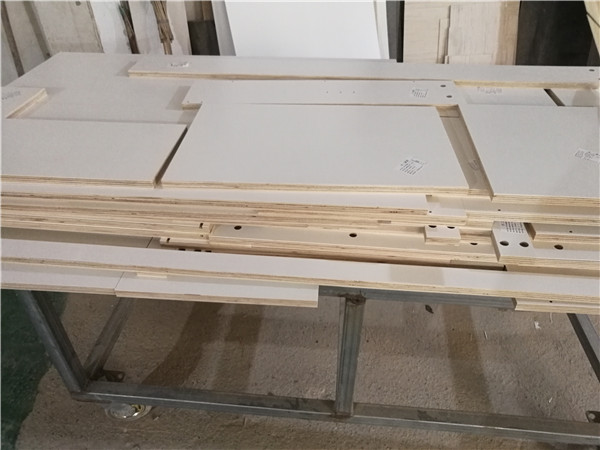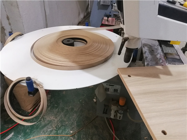 開始封邊啦,封邊采用法國波士熱熔顆粒膠,設備溫度達到200°C封出來的邊牢固,沒有爆邊,完美無瑕。每塊板上都貼有小標簽,方便后期安裝師傅安裝