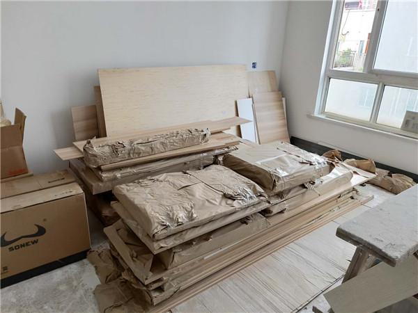 裁板繼續進行中,這是衣帽間采用的<清酸雅枝>實木多層板,很耐看的喲