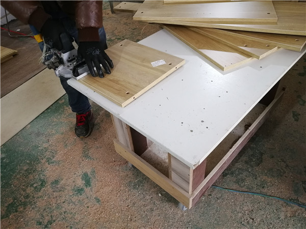 倒角、打孔中,倒角的好處:第一整體效果美觀,第二以防后期開門磕碰到。等著打包了
