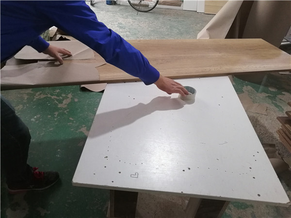 開始封邊啦,封邊采用法國波士熱熔顆粒膠,設備溫度達到200°C封出來的邊牢固,沒有爆邊,完美無瑕。