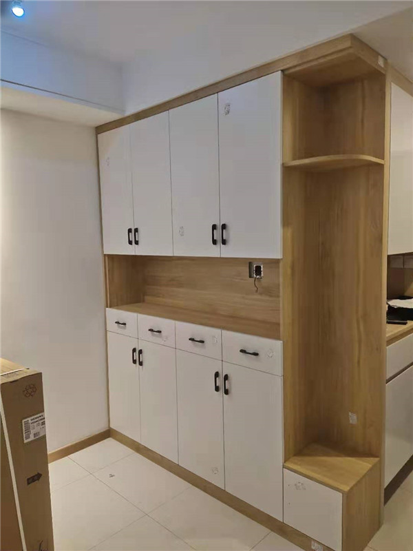 不知不覺,部分門板以封邊完畢,柜體封邊走起。客戶家采用的是平安樹實木多層板,