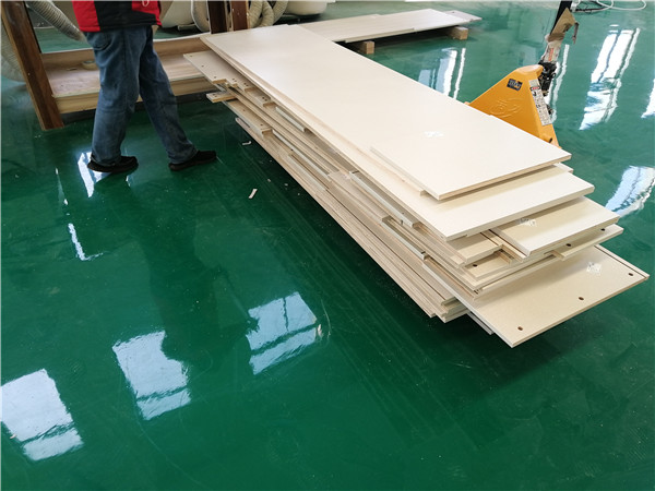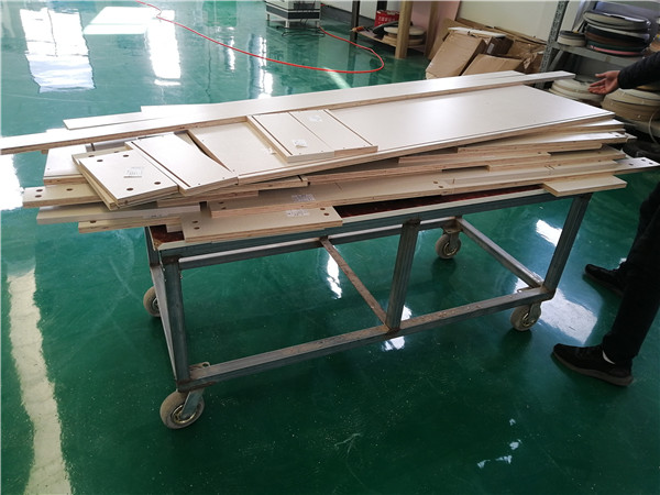 開始制作啦!專業設備裁板,全自動開料尺寸更精準,沒有爆邊。板材使用平安樹實木多層板E0級制作,有高級的藍光防偽標識哦