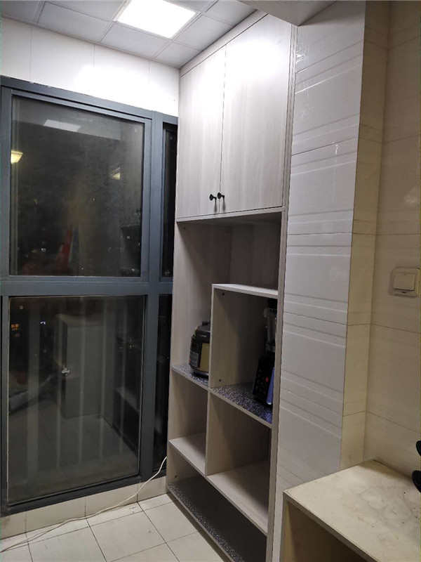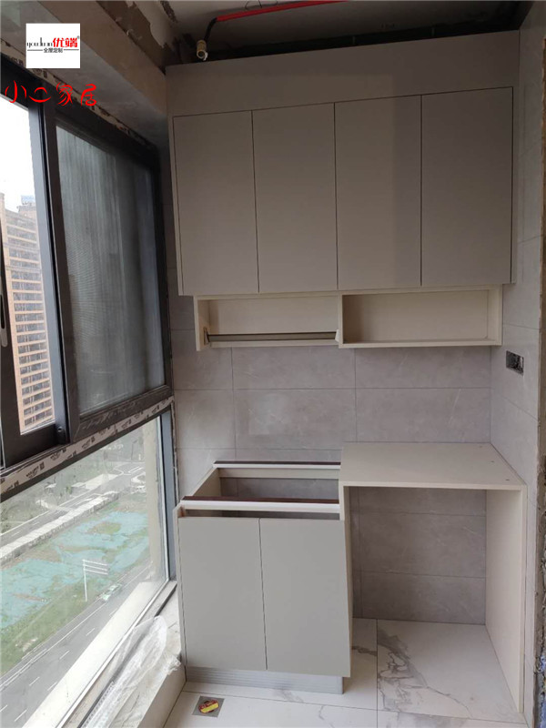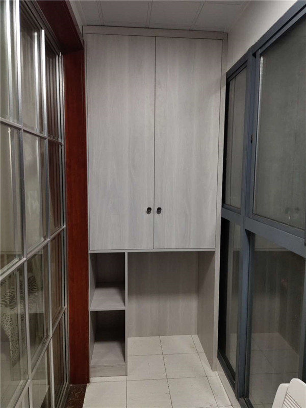 業主家泰盈八千里補的陽臺柜子已安裝完畢,后期有小東西統統可以往里面塞了,這樣陽臺顯得比較清爽干凈。