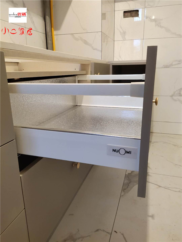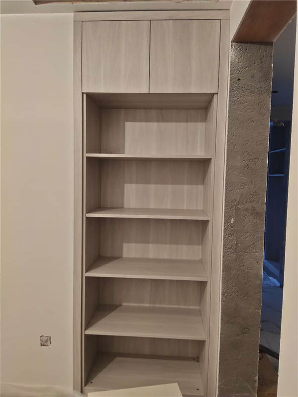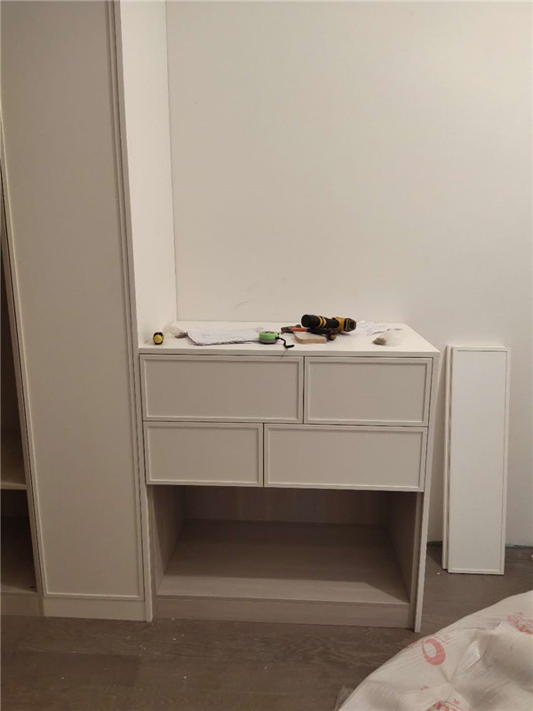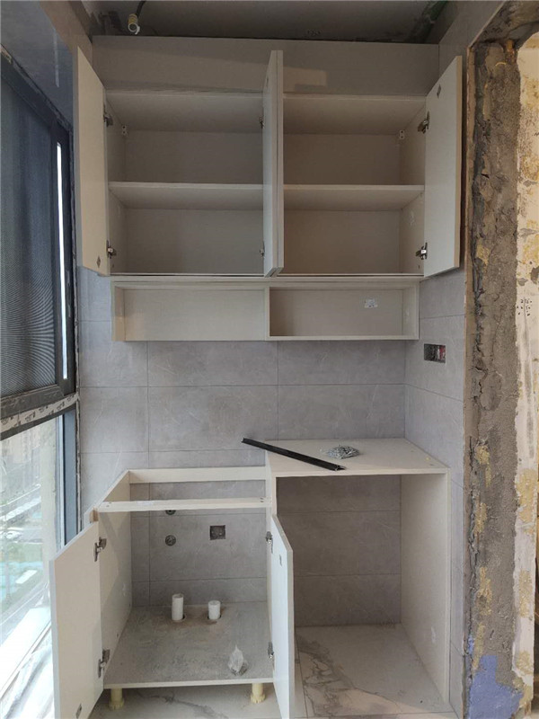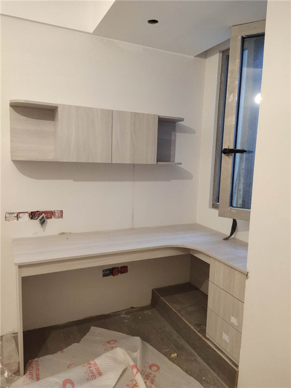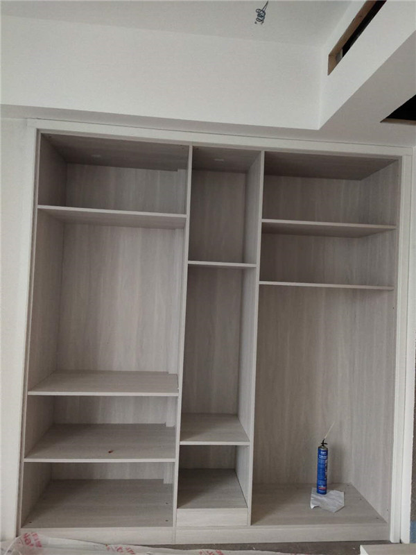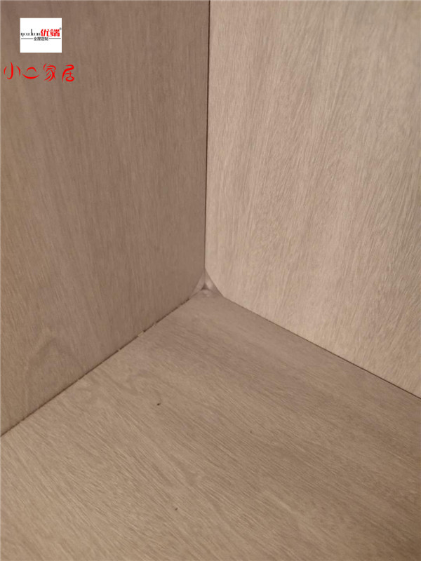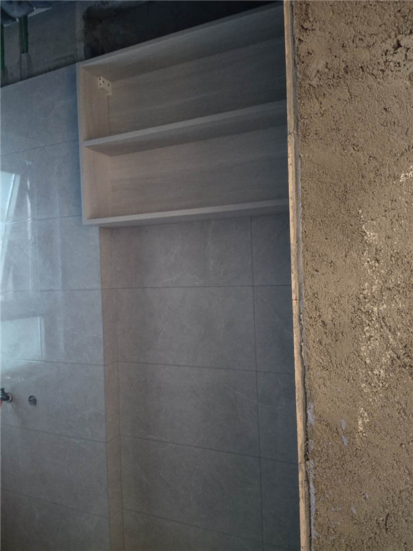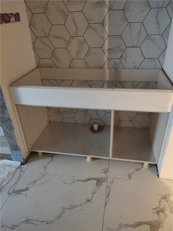 我們的柜體靠墻部分都是用的插槽的背板,背板離墻面距離1.2公分,防止后期使用時間長柜體發霉。