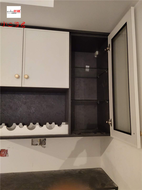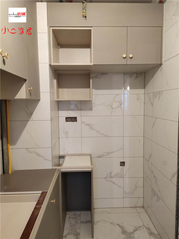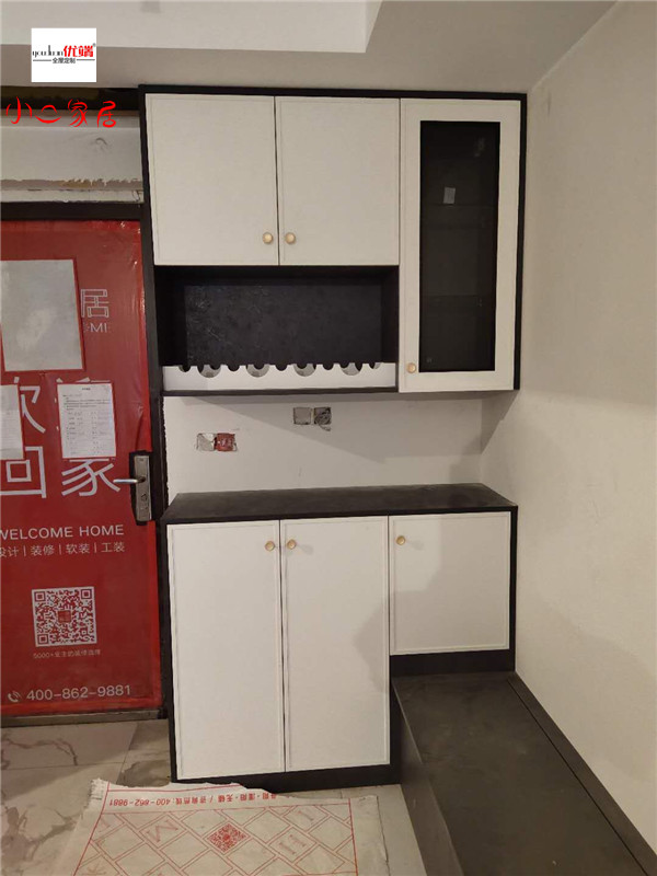 柜子安裝完畢啦!餐邊柜鞋柜卡座合二為一,實用又美觀。業主家廚房蠻大的,收納足足