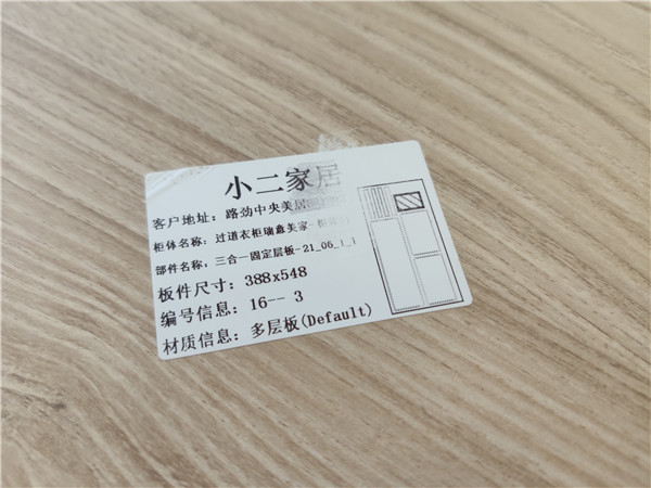 我家不管大小板都是四面封邊哦!每塊板上都貼有小標簽,方便后期安裝師傅安裝.