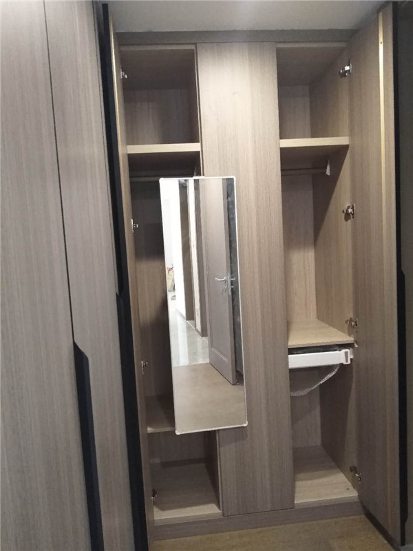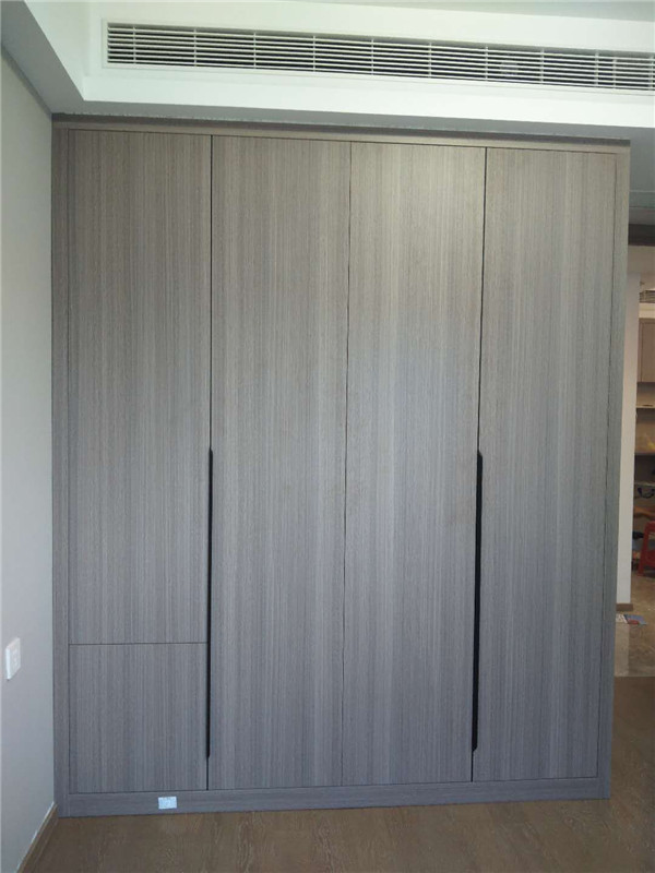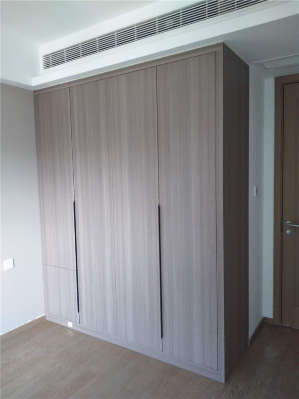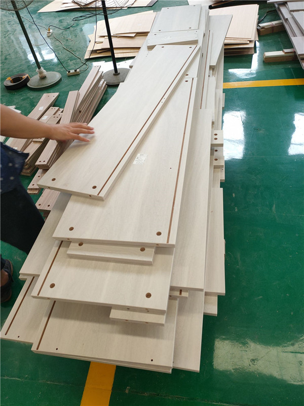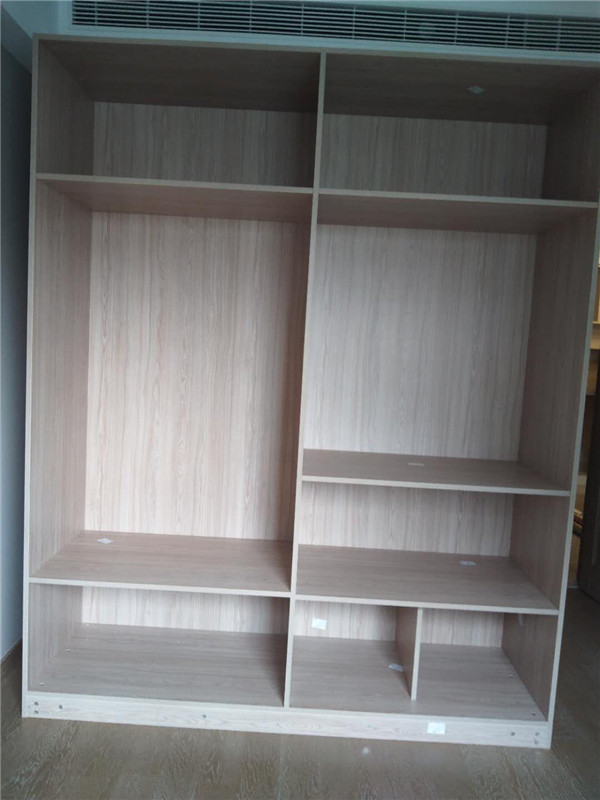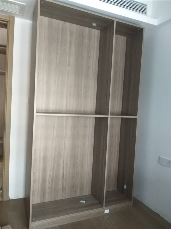 插槽背板離墻面1.7公分,防止使用時間常出現柜體發霉的現象。拆好的板師傅都整整齊齊放在墊板上,沒有高矮不齊的現象,