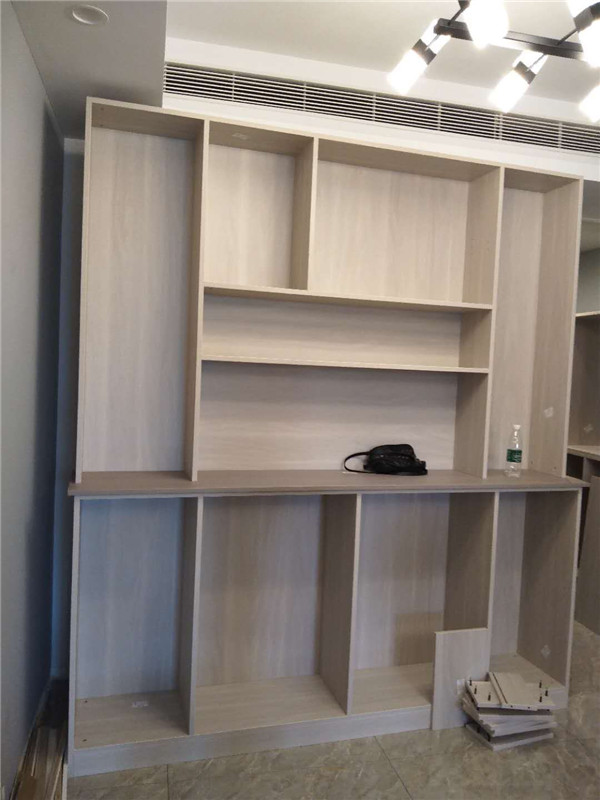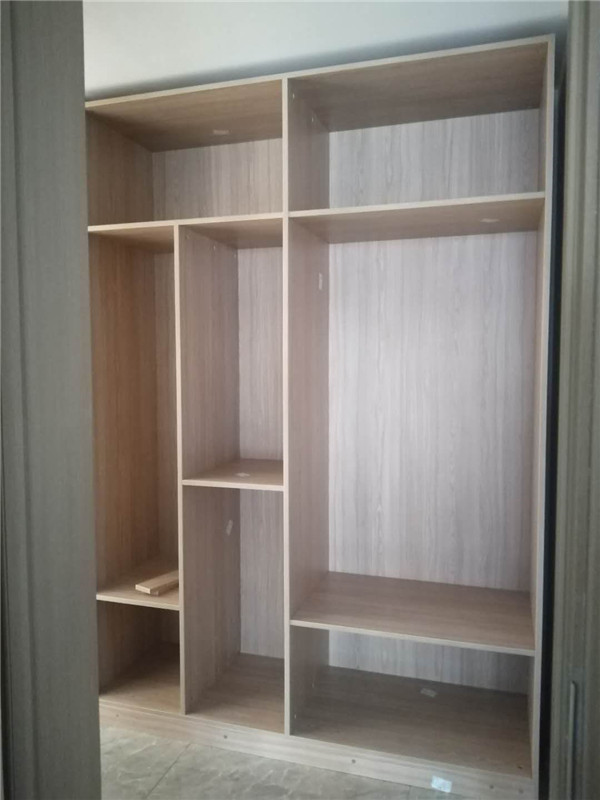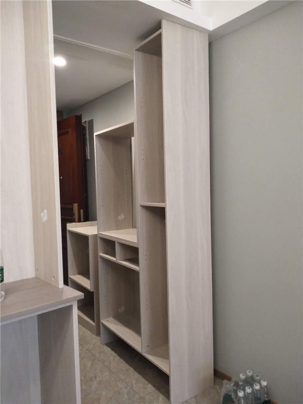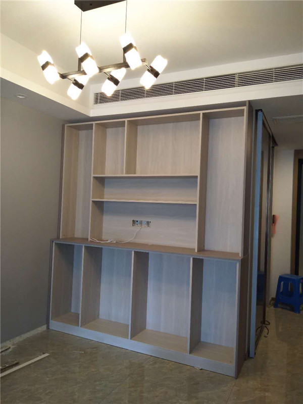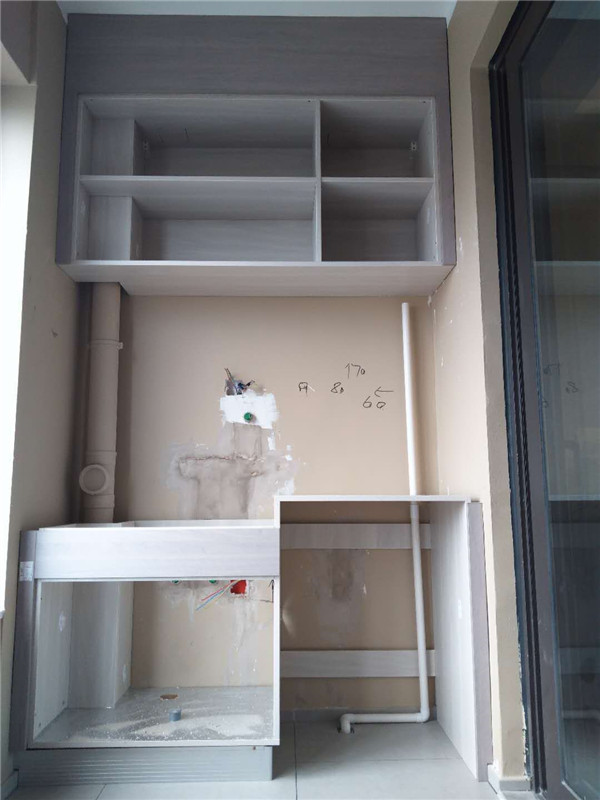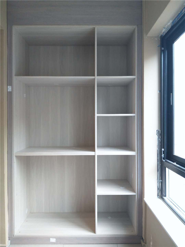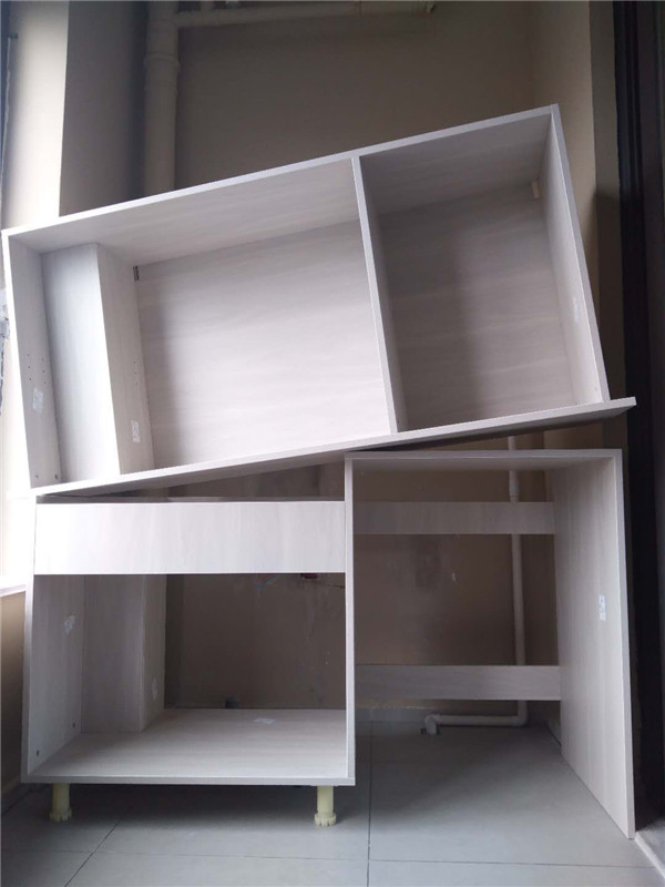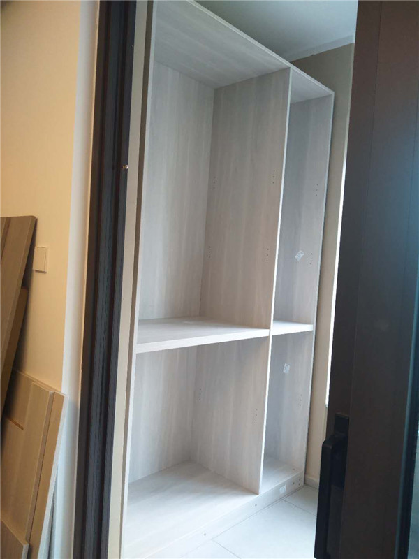 柜體拼裝的差不多了,業主家柜子以淺色系為主整體效果清爽干凈,等柜門安裝好了整體效果就出來了,期待