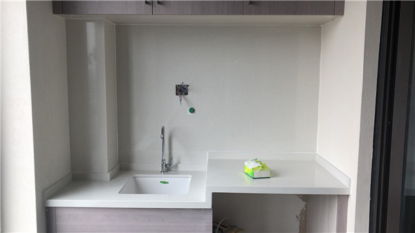 柜子安裝好后進入臺面測量環節,臺面量完后一個星期內送貨并安裝。