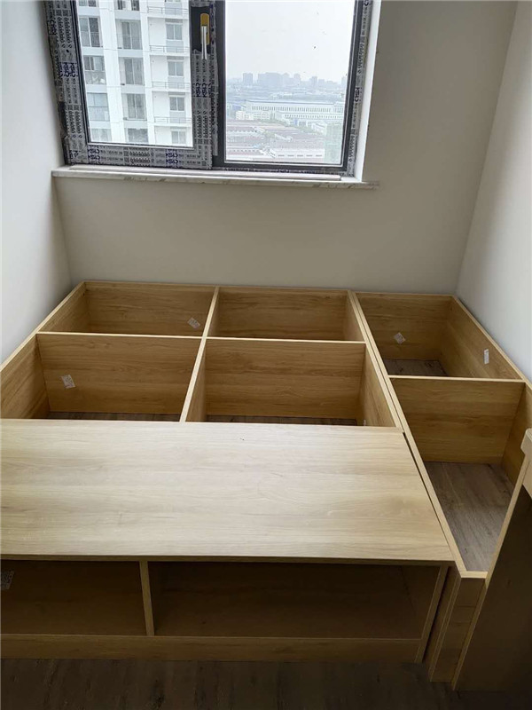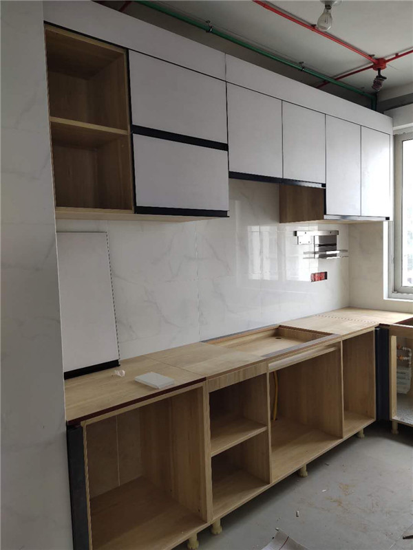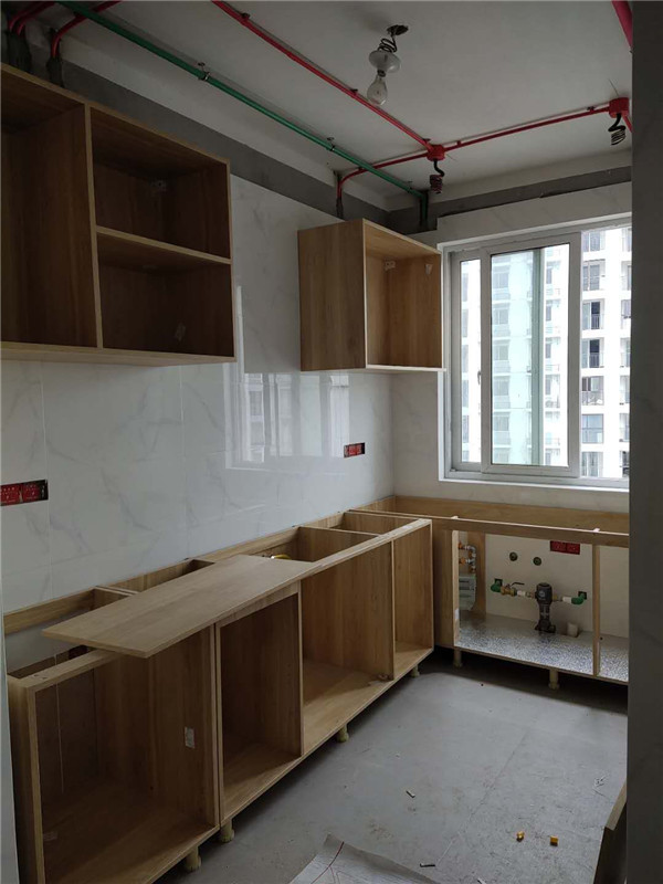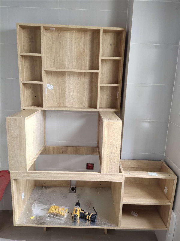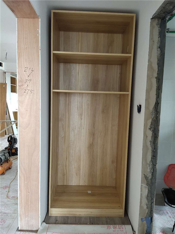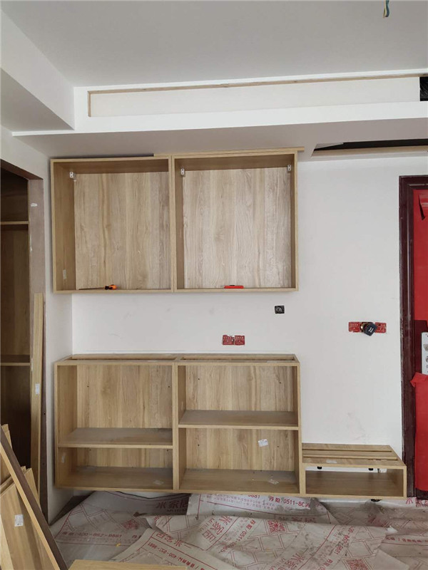 柜體基本拼裝完畢了,師傅太給力了,客戶家柜子蠻多的,照這進度在過兩天就能看到柜子的整體效果了,期待。