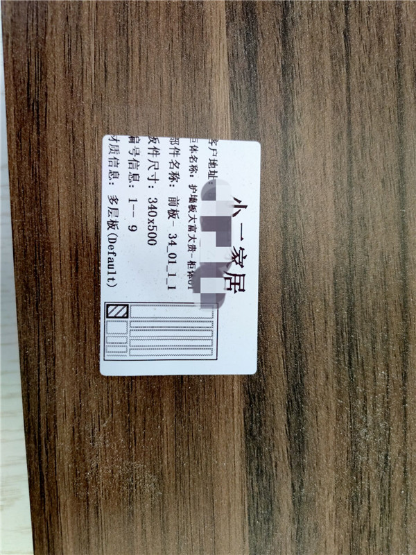 我家不管大小板都是四面封邊哦!每塊板上都貼有小標簽,方便后期安裝師傅安裝,封邊條上都帶有“優端”logo的哦!方便后期售后服務。