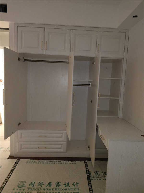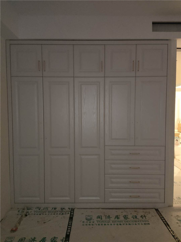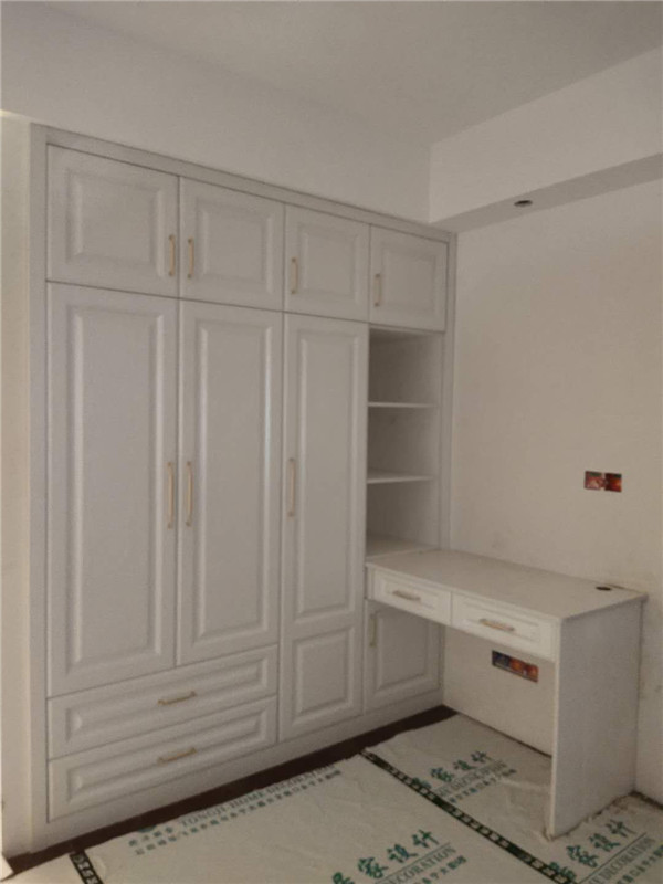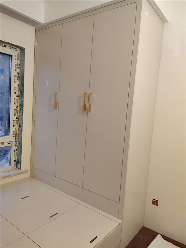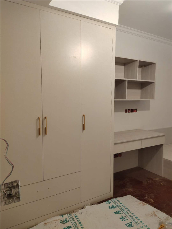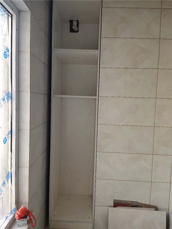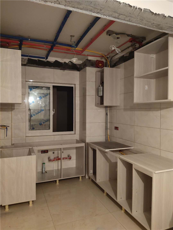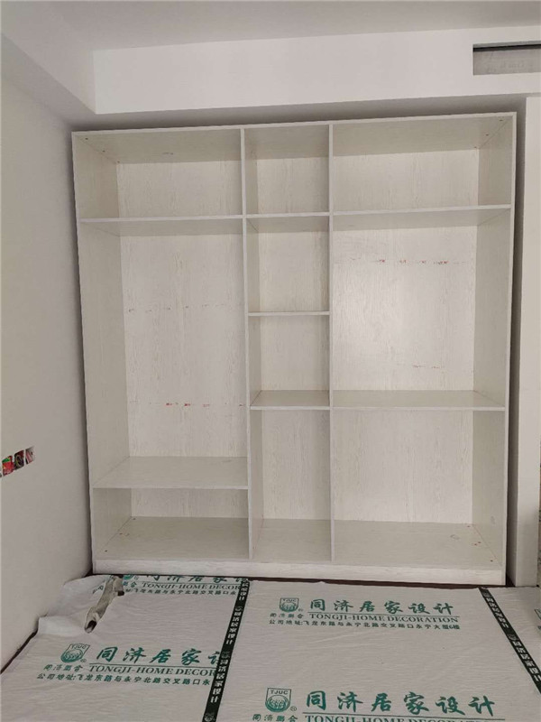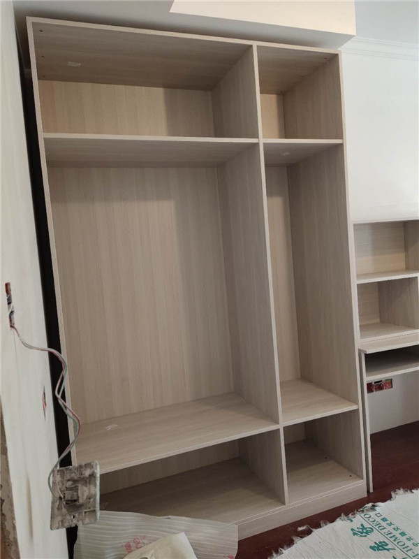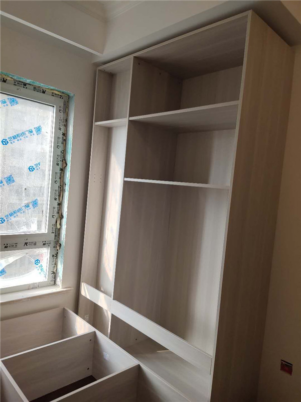 柜體已經拼裝完畢,豎起來了,業主家柜體以淺色調為主,整體效果清爽干凈,在過兩天等柜門安裝好整體效果就出來啦!