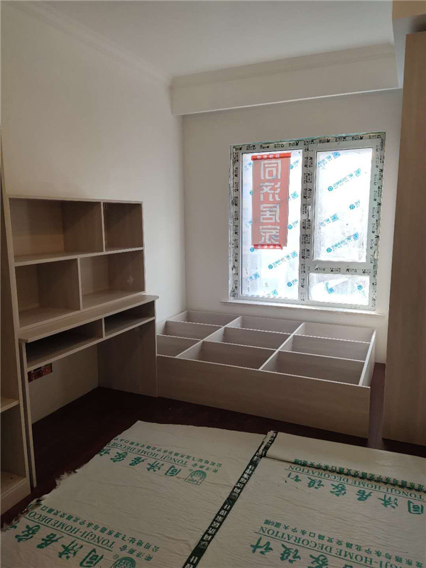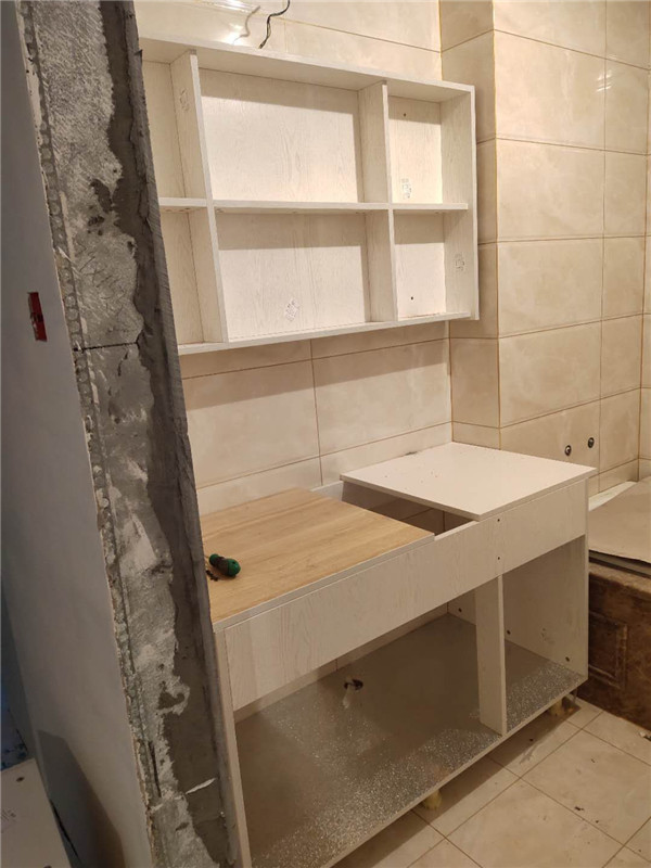 接著下面可能安裝臺面了。柜子多多,儲存多多,榻榻米房間也是做滿了柜子,書柜書桌衣柜統統都有,