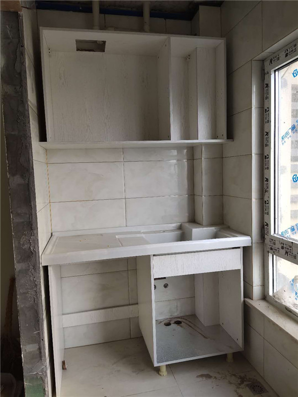 灶具、浴柜臺盆放置在現場,后期臺面安裝需用到。柜子安裝好后進入臺面測量環節,臺面量完后一個星期內送貨并安裝。