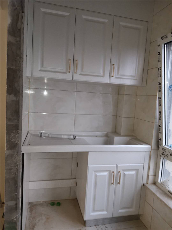 柜子是不是超級多,后期收納不用愁啦!陽臺一邊洗衣柜一邊陽臺高柜,放點洗衣粉衣架等拿取也比較方便。