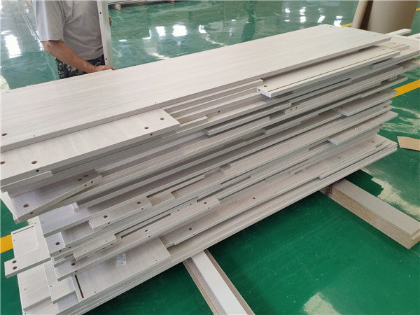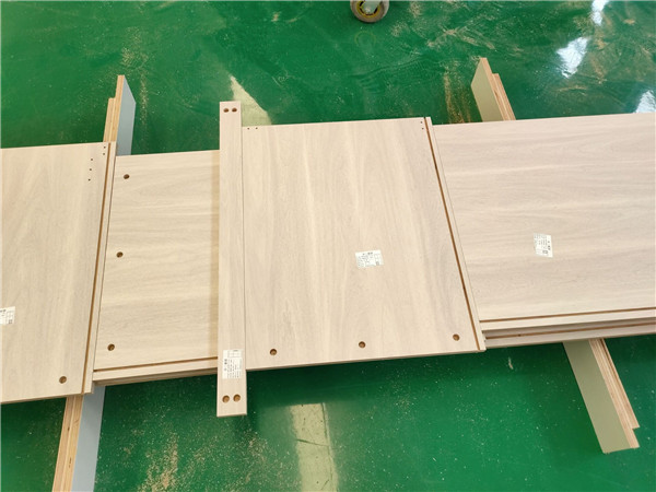 插槽背板離墻面1.7公分,防止使用時間常出現柜體發霉的現象。拆好的板師傅都整整齊齊放在墊板上,