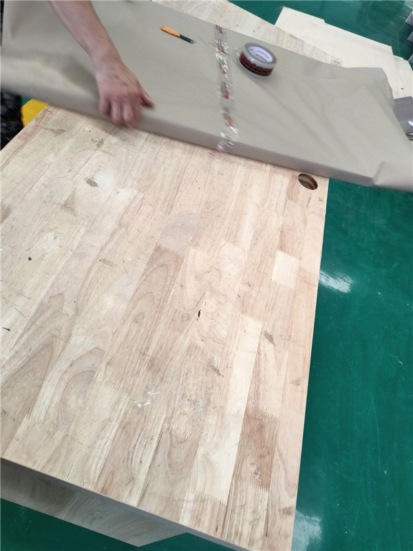 封邊完畢,已進入打包環節。柜門師傅會用柏油清洗劑全部擦拭一遍,以保證裝到客戶家整潔美觀。