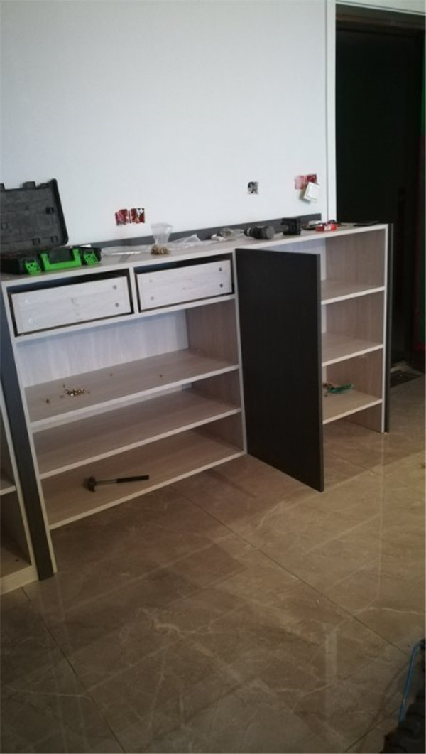 客戶家柜體基本拼裝完畢啦,柜體選擇的都是淺色系,