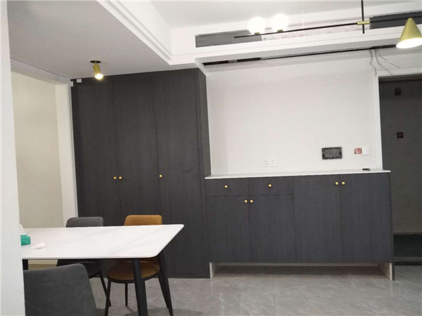 柜子的整體效果來了,業主家動作真快,燈具,成品家居都進場了,整體效果很nice,滿滿的溫馨感。