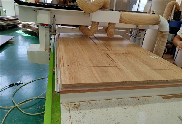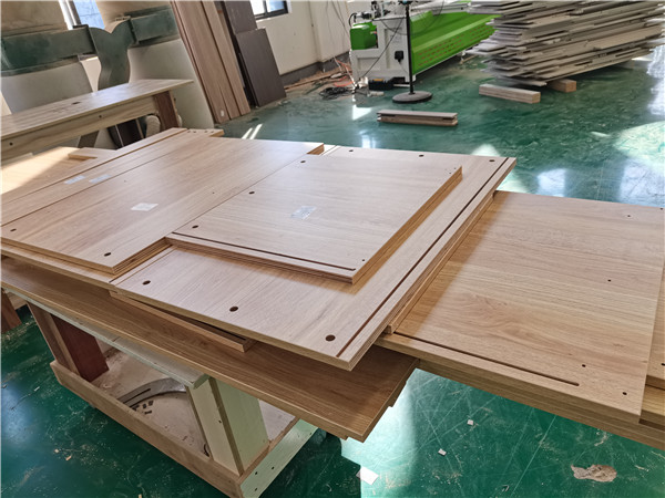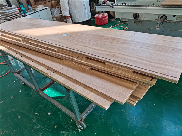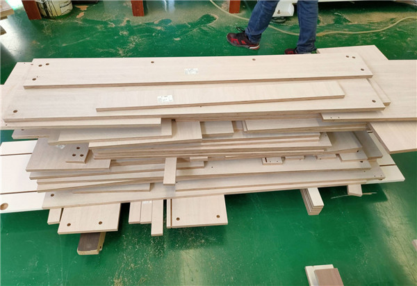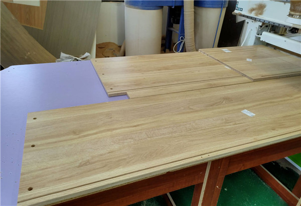 開始制作啦!專業設備裁板,板材使用平安樹實木多層板E0級制作,有高級的藍光防偽標識哦,邊口都是直的,沒有爆邊的情況,