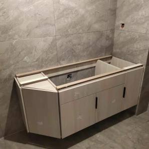 已進入打包環節。柜門師傅會用柏油清洗劑全部擦拭一遍,以保證裝到客戶家整潔美觀。