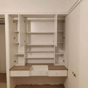 這樣后面封出來的邊更圓滑,全自動機器開料尺寸更精準。插槽背板離墻面1.7公分,防止使用時間常出現柜體發霉的現象。