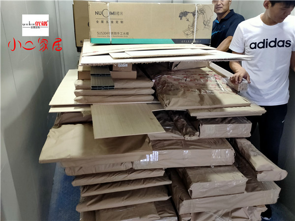 后面裝到客戶家還有我家柜子每塊板都是整個(gè)打包起來(lái)的,以防運(yùn)輸