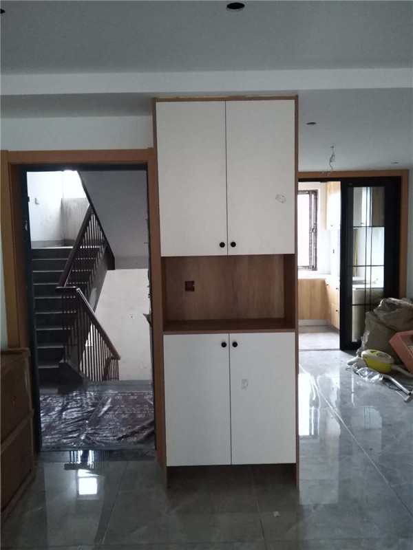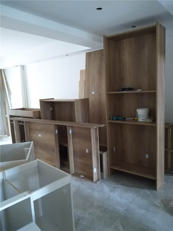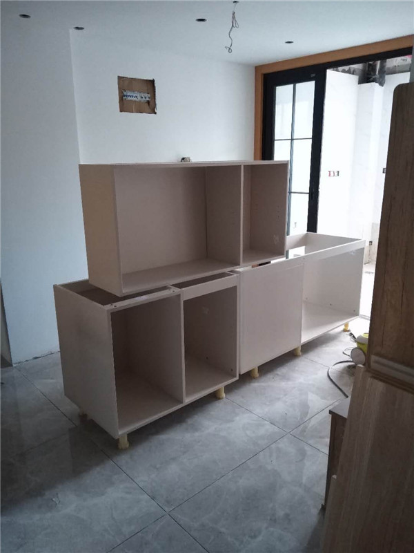 一天的時(shí)間,師傅柜體基本拼裝完畢,個(gè)別柜體已經(jīng)豎起來(lái)還未固定,