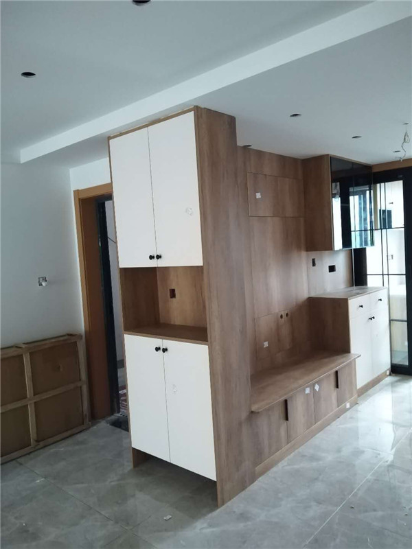 柜子安裝完畢啦!客廳廚房以原木色配白色為主,給人一種溫馨放松的家庭氛圍。鞋柜連著卡座餐邊柜,充分利用空間,收納儲(chǔ)物美貌兩不誤。