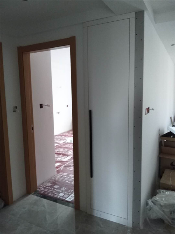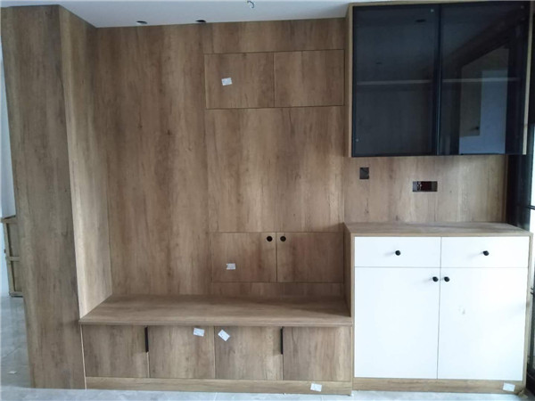 墻面還有凸出。設(shè)計(jì)師采用的是墻面全部采用雙飾面作為背景,而且還在電箱