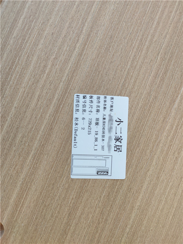 我家不管大小板都是四面封邊哦!每塊板上都貼有小標(biāo)簽,方便后期安裝師傅安裝。