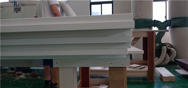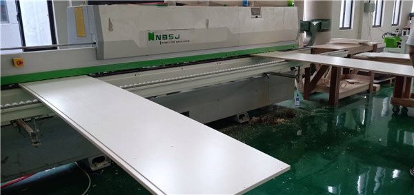 開始裁板啦,板材選用平安樹E0級(jí)多層板,專業(yè)的機(jī)器裁板,裁板打孔一起,這樣裁出來的板不爆邊。