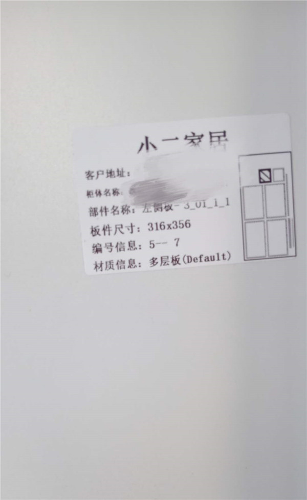 每塊板上都貼有小標(biāo)簽,方便后期安裝師傅安裝,封邊條上都帶有“優(yōu)端”logo的哦!方便后期售后。