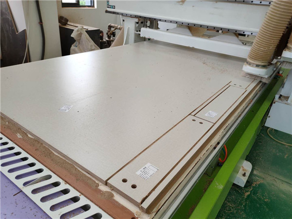 開始拆板啦,客戶家采用的是平安樹實木多層板E0級制作,有高級藍(lán)光防偽標(biāo)志哦!機(jī)器采用的是全自動開料機(jī),